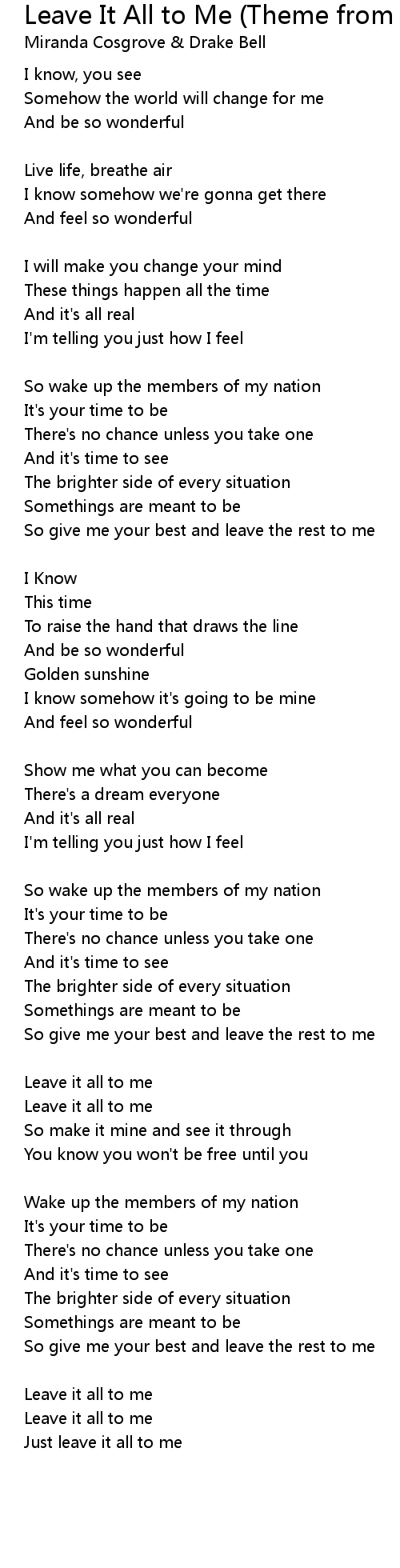 Leave It All to Me (Theme from iCarly) (Billboard Remix) Lyrics