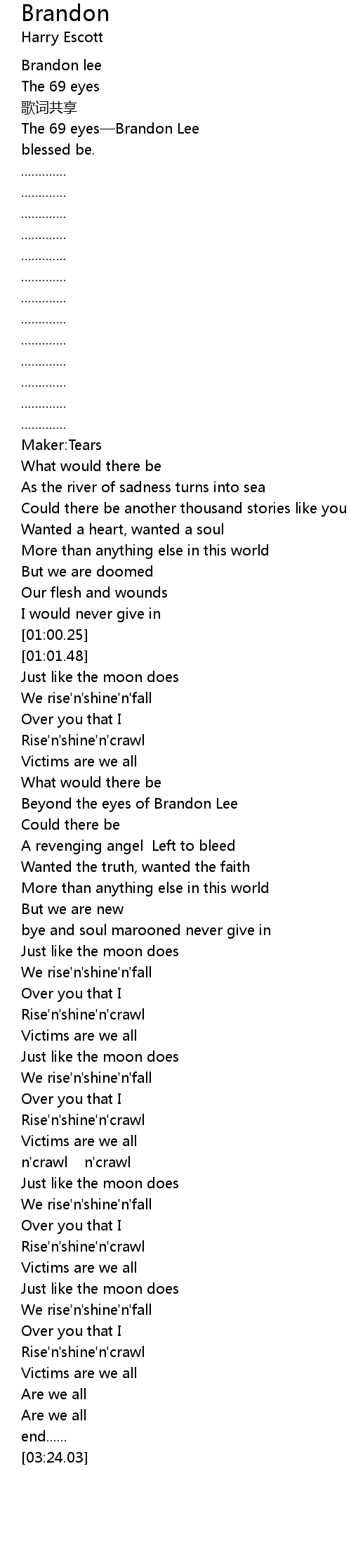 | [01:17.56] | Beyond the eyes of Brandon Lee |