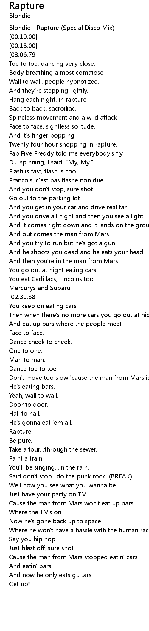 Blondie - Rapture (Special Disco Mix) |