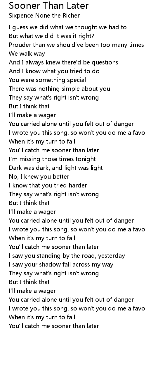 You'll catch me sooner than later |