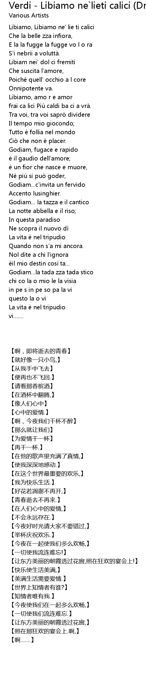 | [00:20.74] | Libiamo, Libiamo ne' lie ti calici |