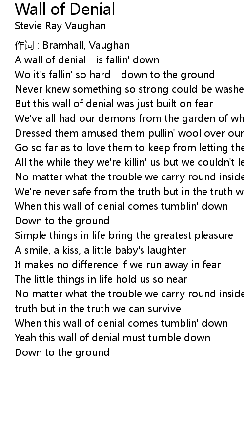 | A wall of denial is fallin' down | |