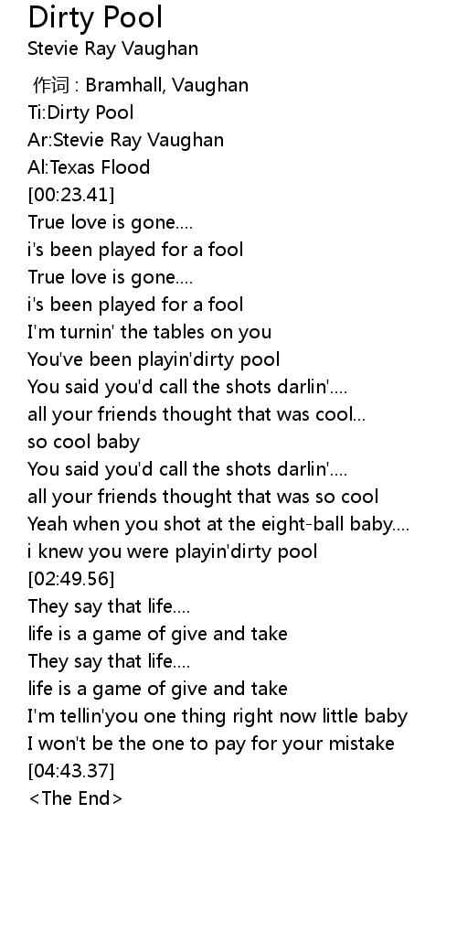 | [02:41.27] | i knew you were playin' dirty pool |