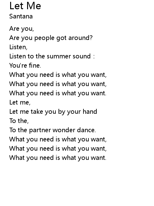 | What you need is what you want, | |