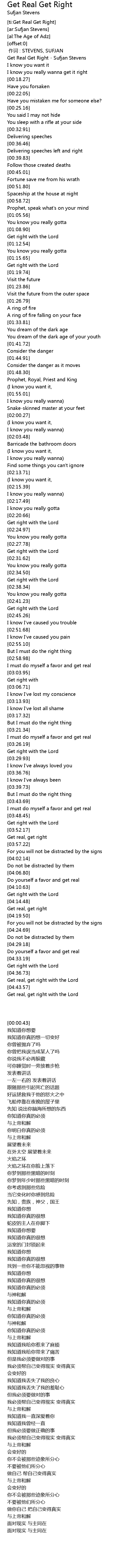 | [00:00.43] | Get Real Get Right Sufjan Stevens |