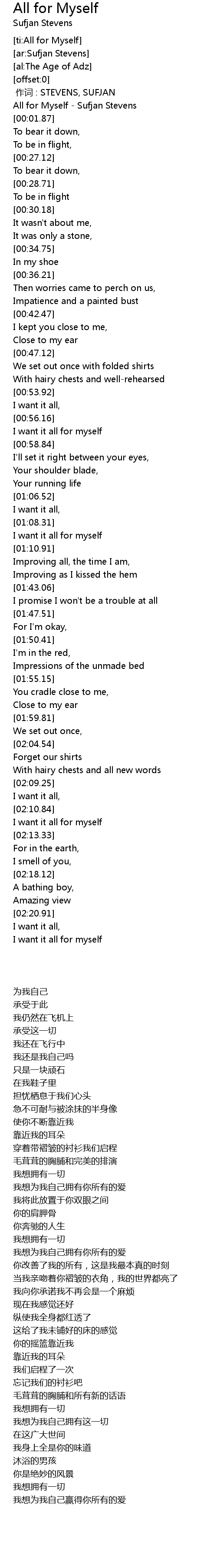 | [00:00.61] | All for Myself Sufjan Stevens |