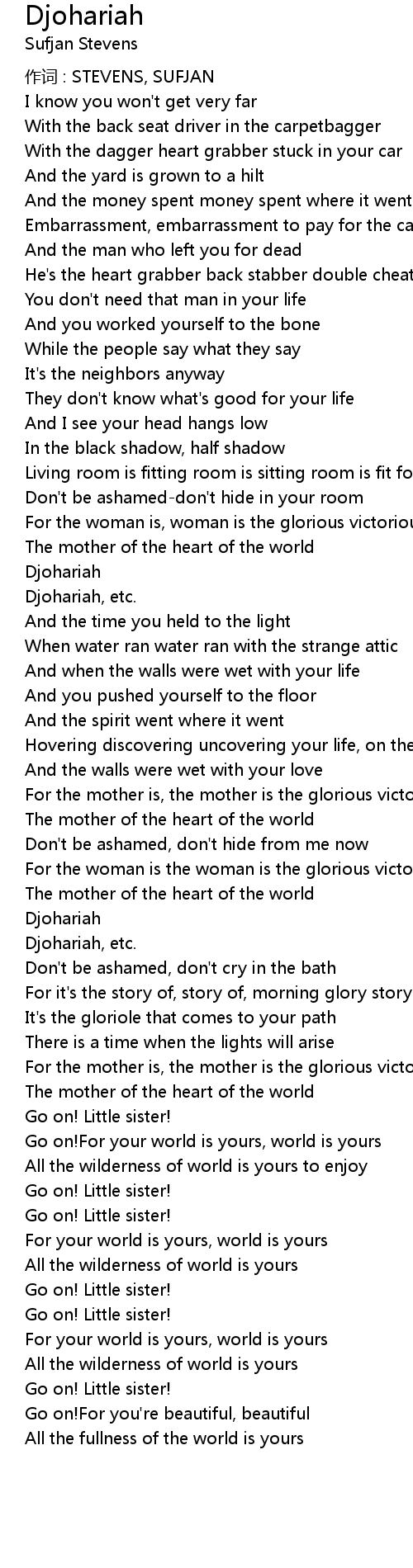 | 作词 : STEVENS, SUFJAN | |