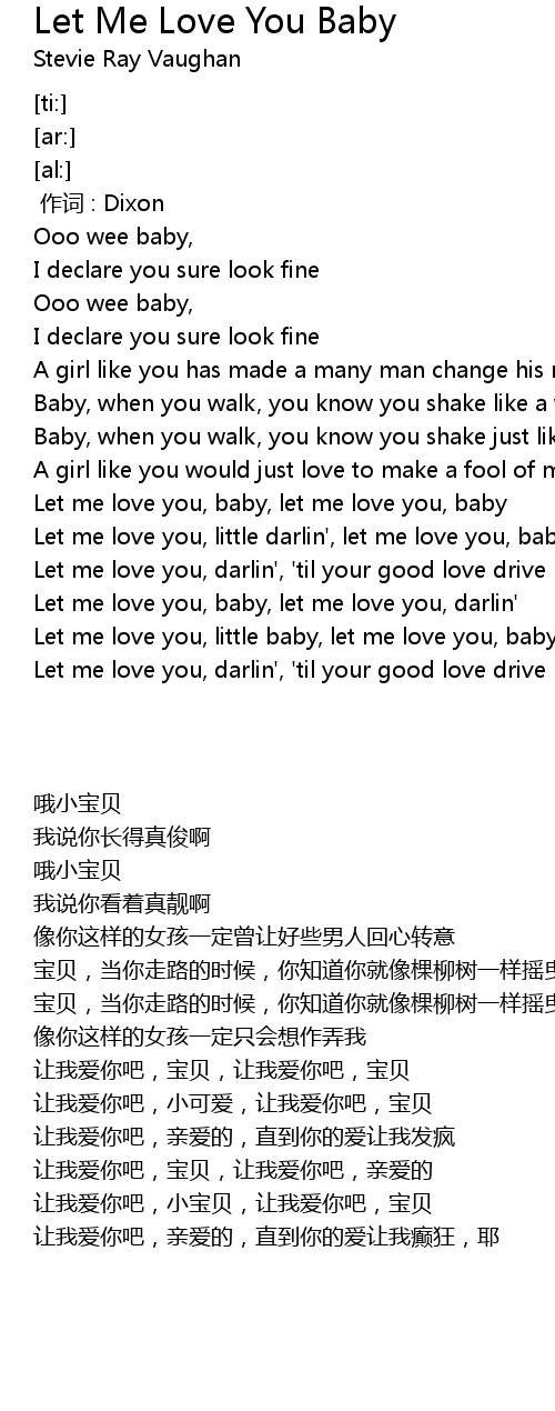 | [01:13.23] | Let me love you, little darlin', let me love you, baby |