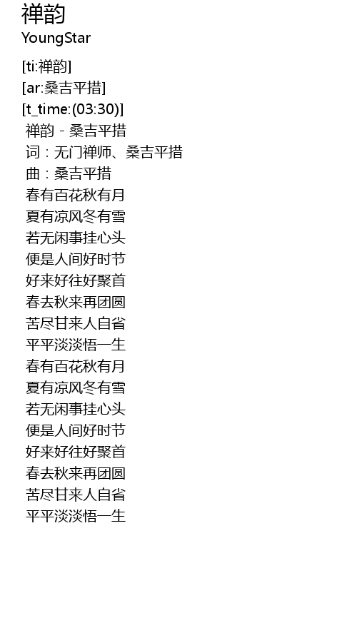 | [00:01.33] | 禅韵 - 桑吉平措 |