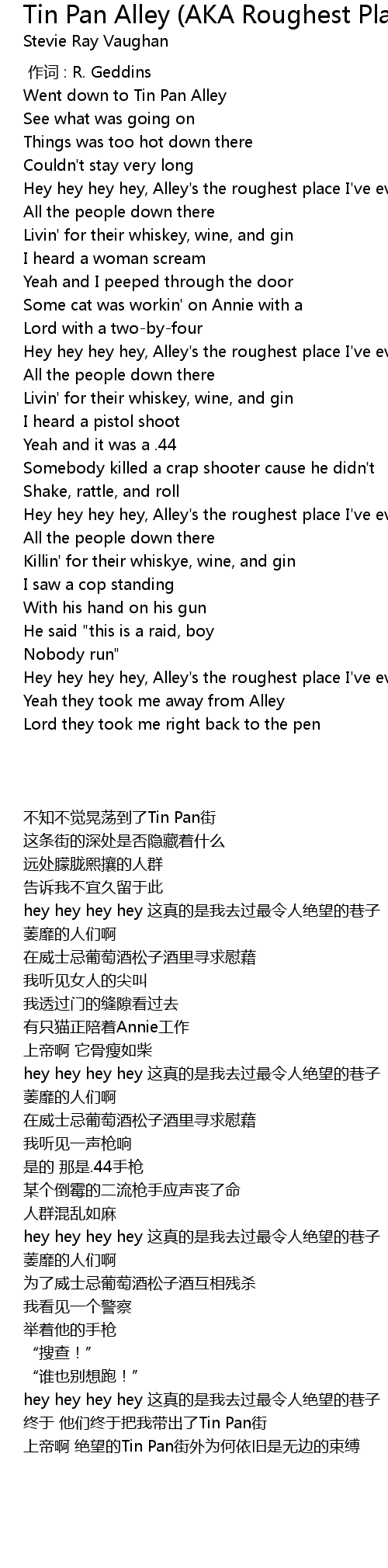 | [05:30.500] | Hey hey hey hey, Alley' s the roughest place I' ve ever been |