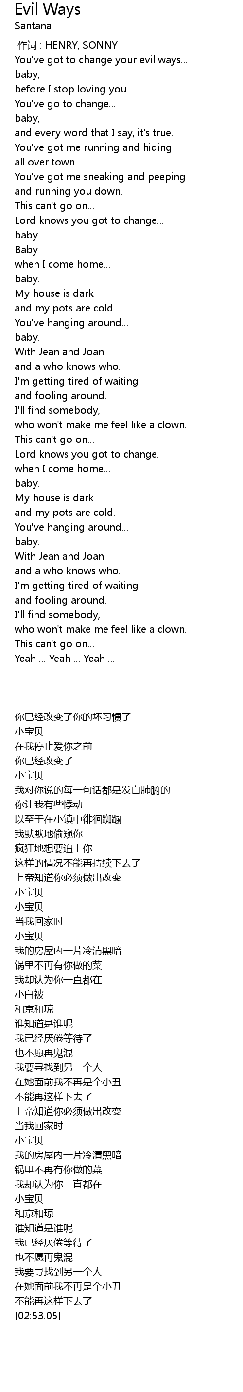 | [00:17.65] | You' ve got to change your evil ways... |