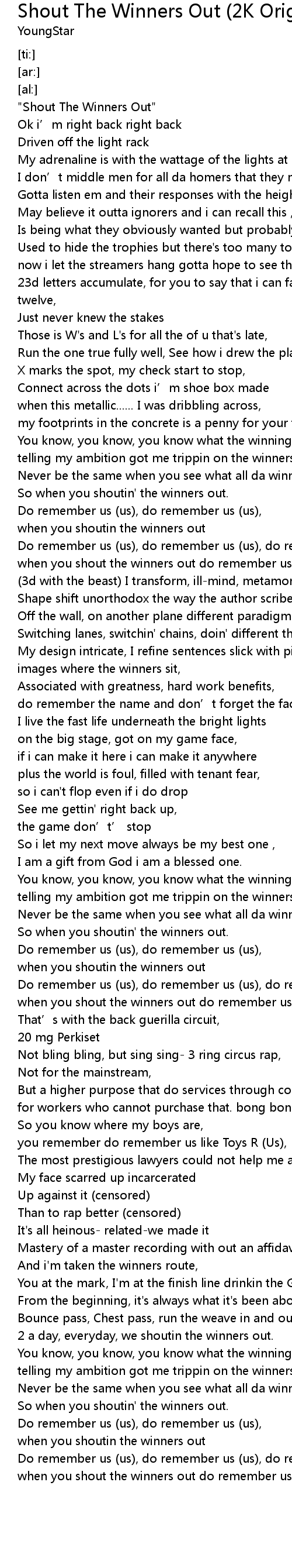 | [00:57.53] | You know, you know, you know what the winning ' bout, |