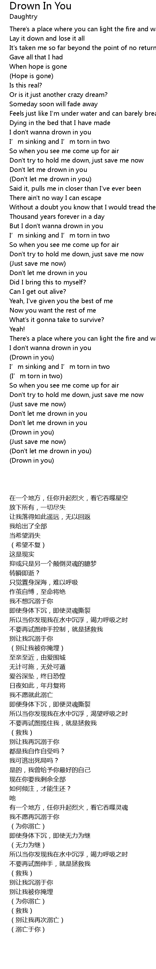 | [00:50.460] | I don' t wanna drown in you |