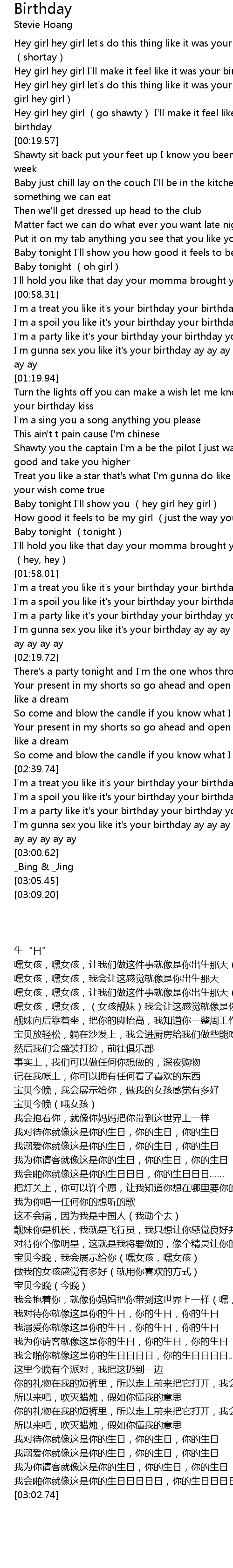 | [02:53.93] | I'm gunna sex you like it's your birthday ay ay ay ay your birth day ay ay ay ay ay |