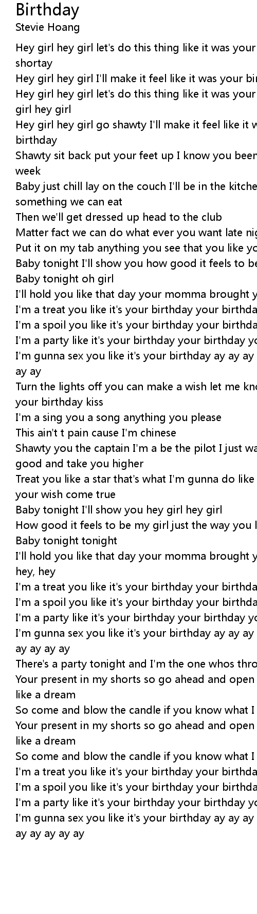 I'm gunna sex you like it's your birthday ay ay ay ay your birth day ay ay ay ay ay |