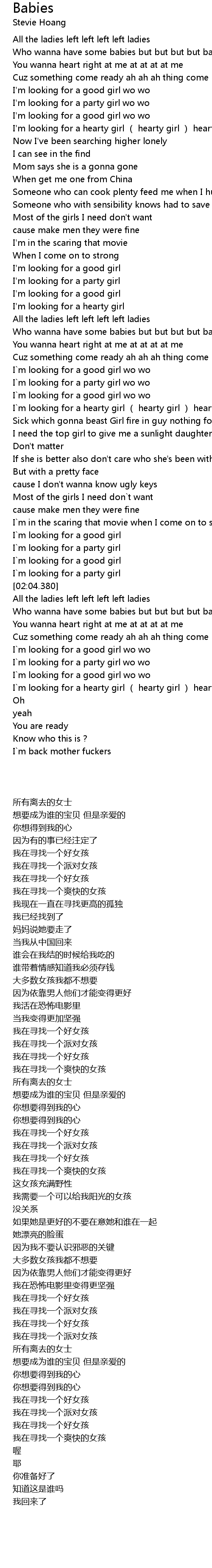 | [02:21.680] | Who wanna have some babies but but but but babies |