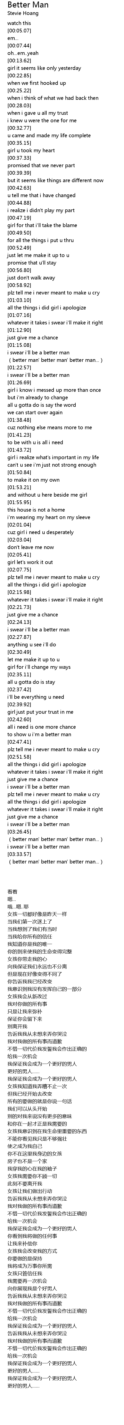 | [03:35.88] | (better man' better man' better man...) |