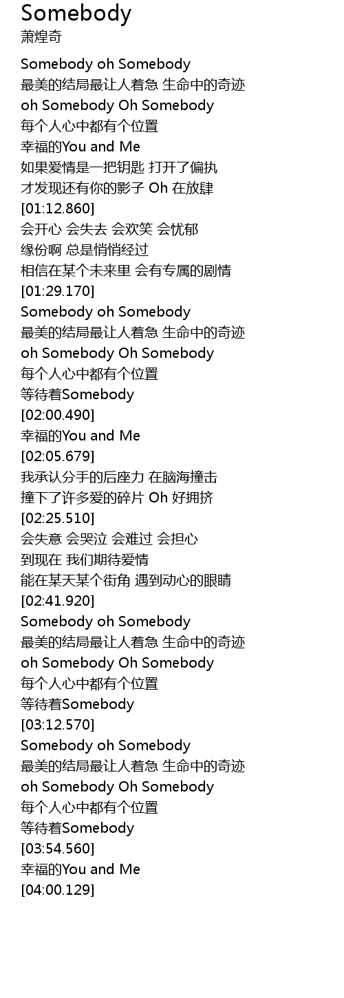 | [03:32.700] | 最美的结局最让人着急 生命中的奇迹 |