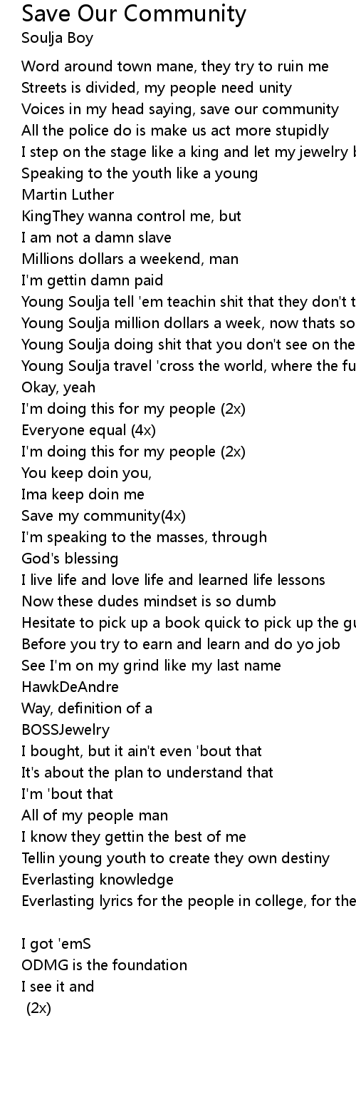 Voices in my head saying, save our community |