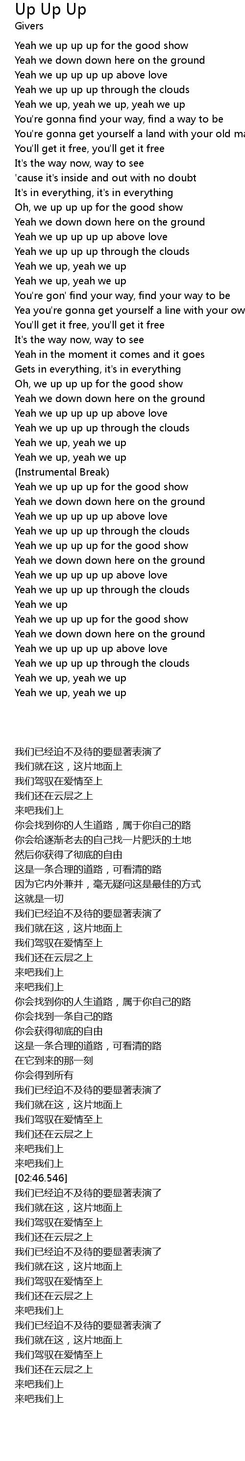 | [00:18.052] | Yeah we up, yeah we up, yeah we up |