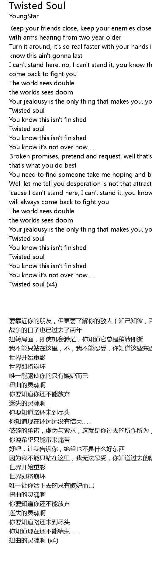 | [00:35.567] | I can' t stand here, no, I can' t stand it, you know that things always come back to fight you |