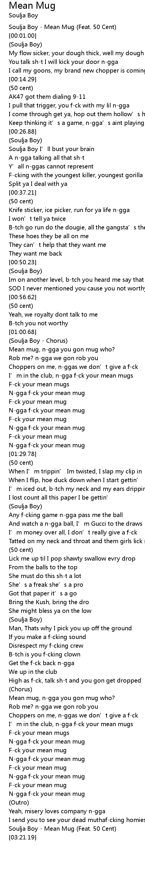 | [00:00.00] | Soulja Boy - Mean Mug (Feat. 50 Cent) |