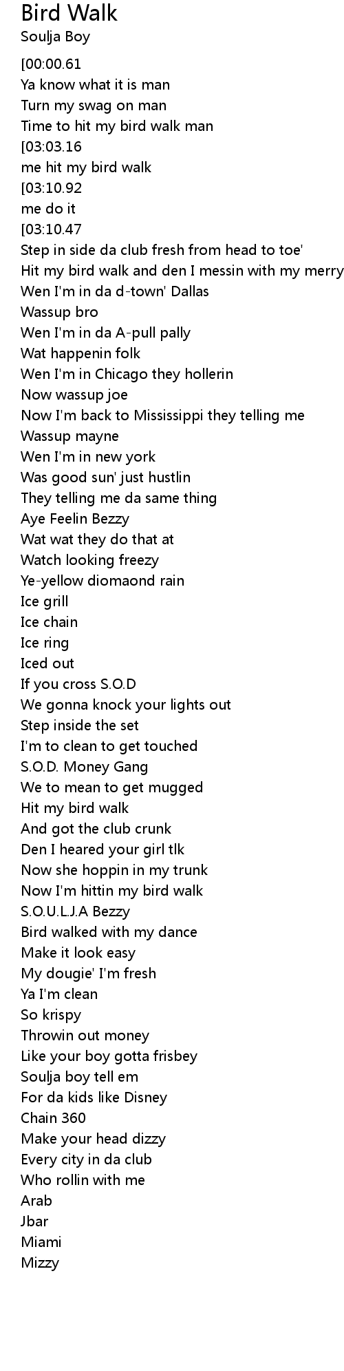 Hit my bird walk |