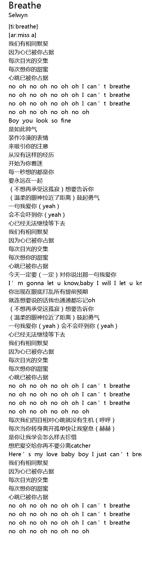 | [00:36.38] | no oh no oh no oh oh I can ' t breathe |
