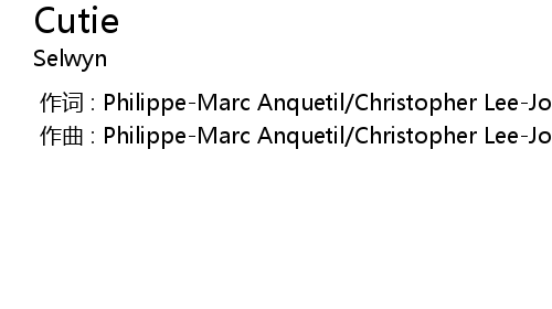 | [00:00.000] | 作词 : Philippe-Marc Anquetil/Christopher Lee-Joe/Selwyn Pretorius |