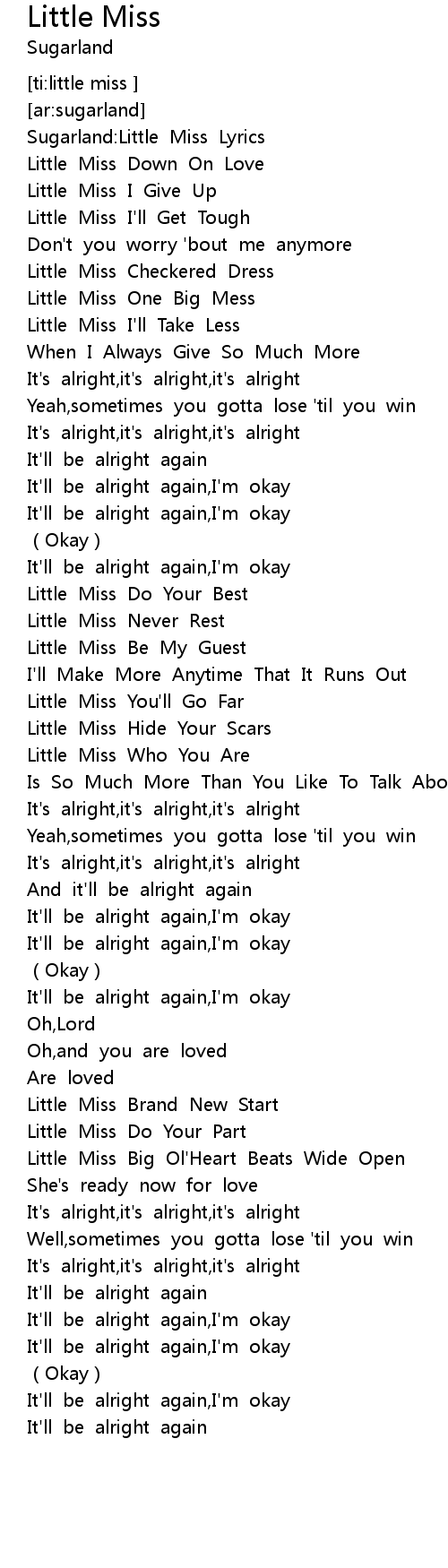 | [00:07.51] | Sugarland: Little Miss Lyrics |