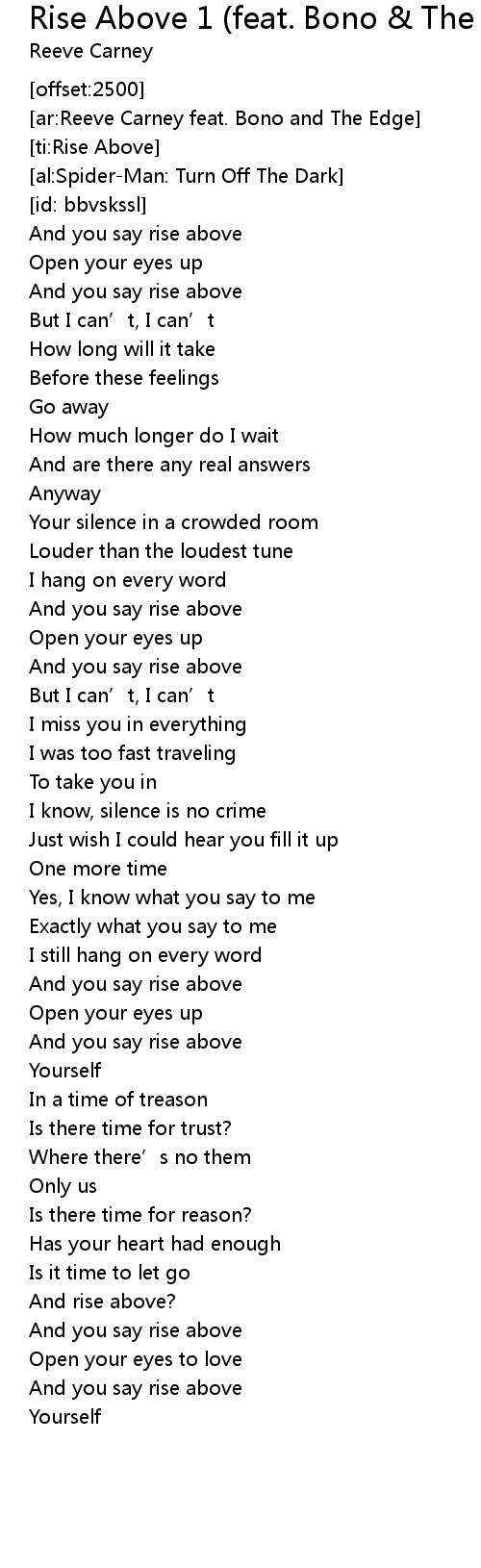 | [ar:Reeve Carney feat. Bono and The Edge] | |