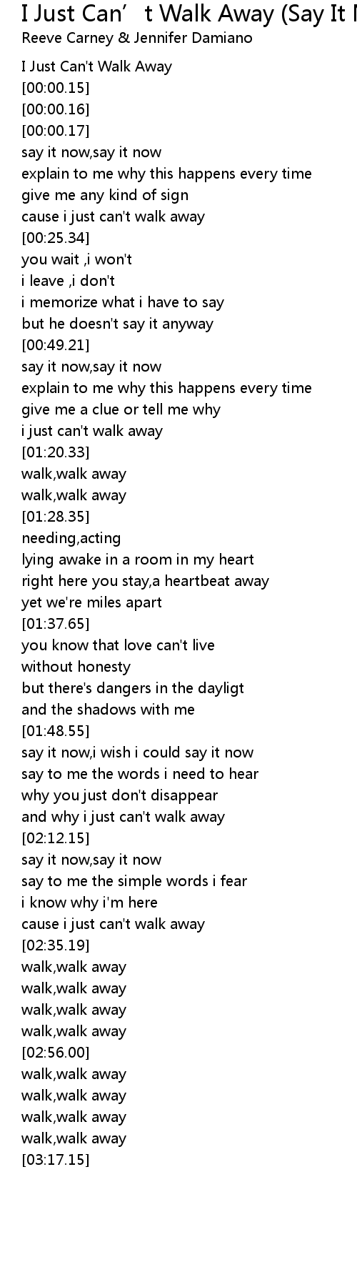 I Just Can’t Walk Away (Say It Now) I Just Can' t Walk Away Say It Now Lyrics