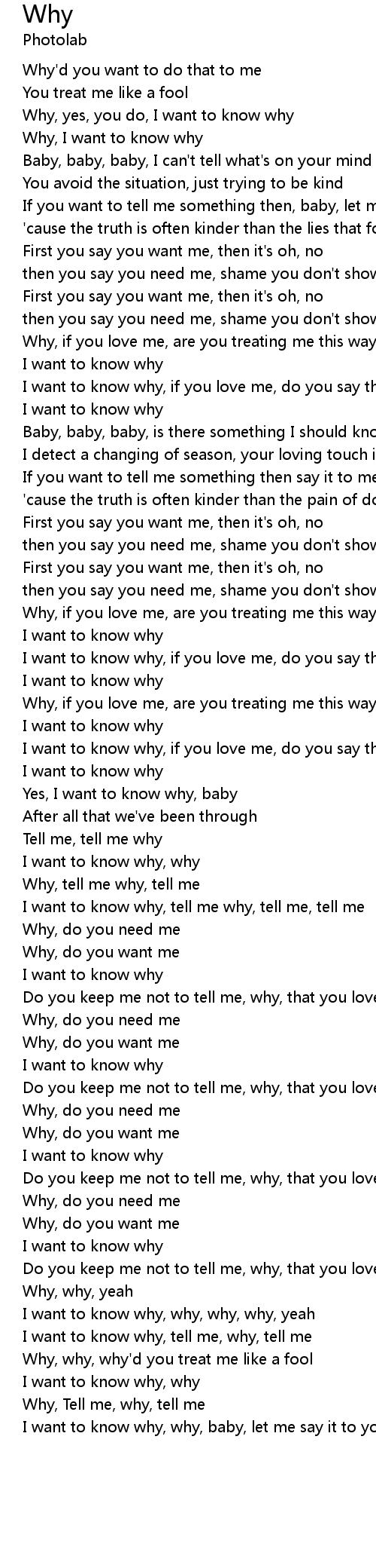 I want to know why, why, why, why, yeah |