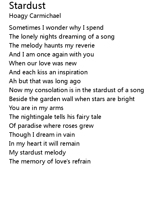 | Now my consolation is in the stardust of a song | |