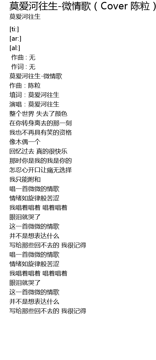 | [00:02.48] | 莫爱河往生-微情歌 |