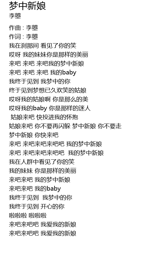| 来吧 来吧 来吧我的梦中新娘 | |