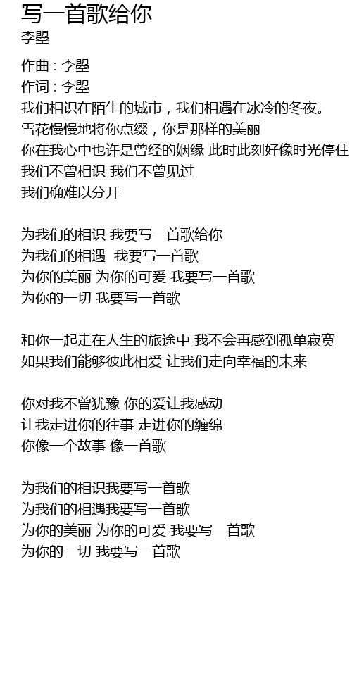 | 为你的美丽 为你的可爱 我要写一首歌 | |