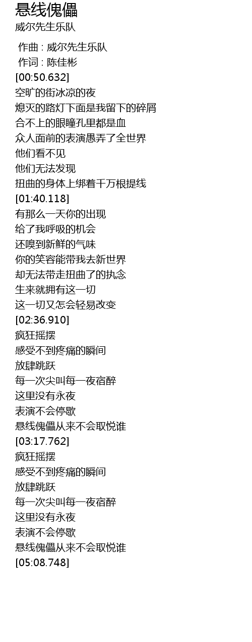 | [04:59.097] | 悬线傀儡从来不会取悦谁 |