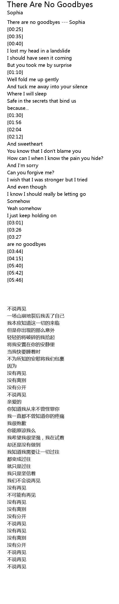[03:18][03:27][03:35][04:32][04:41][04:49][04:58][05:07][05:16][05:24][05:33] There are no goodbyes