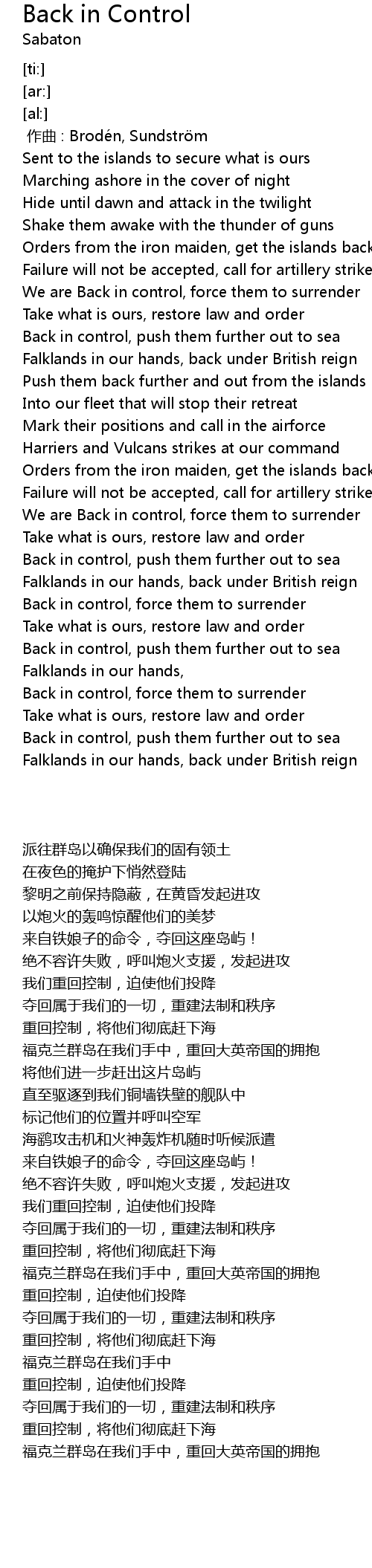 | [03:02.34] | Falklands in our hands, back under British reign |
