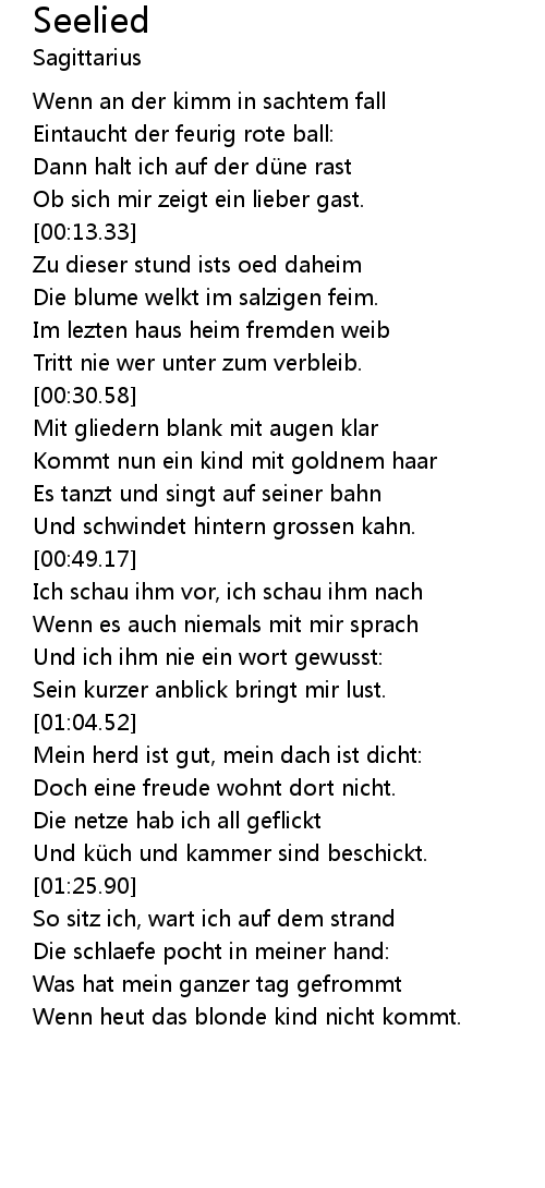 | [00:19.49] | Die blume welkt im salzigen feim. |