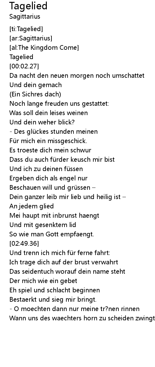 | [04:02.37] | Wann uns des waechters horn zu scheiden zwingt. |