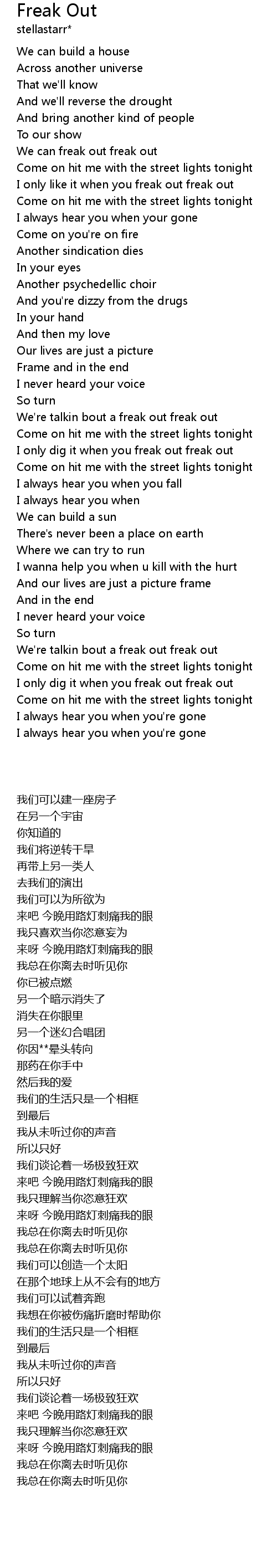 Freak Out Lyrics
