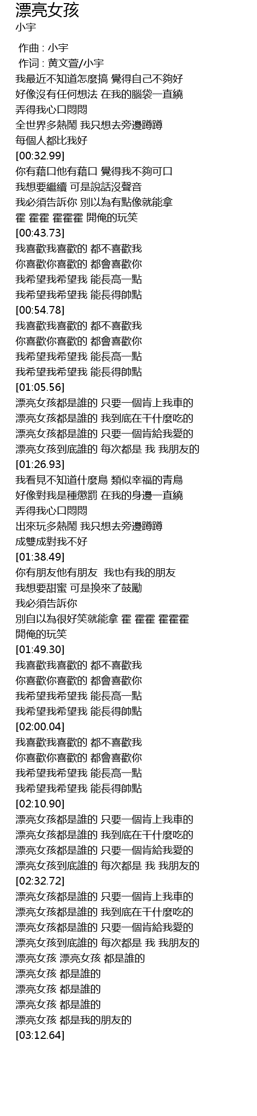 | [02:54.83] | 漂亮女孩 漂亮女孩 都是誰的 |