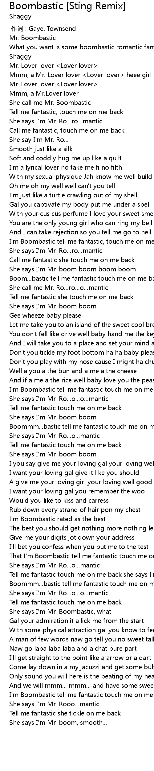| [03:22.20] | She says I' m Mr. Boombastic, what |