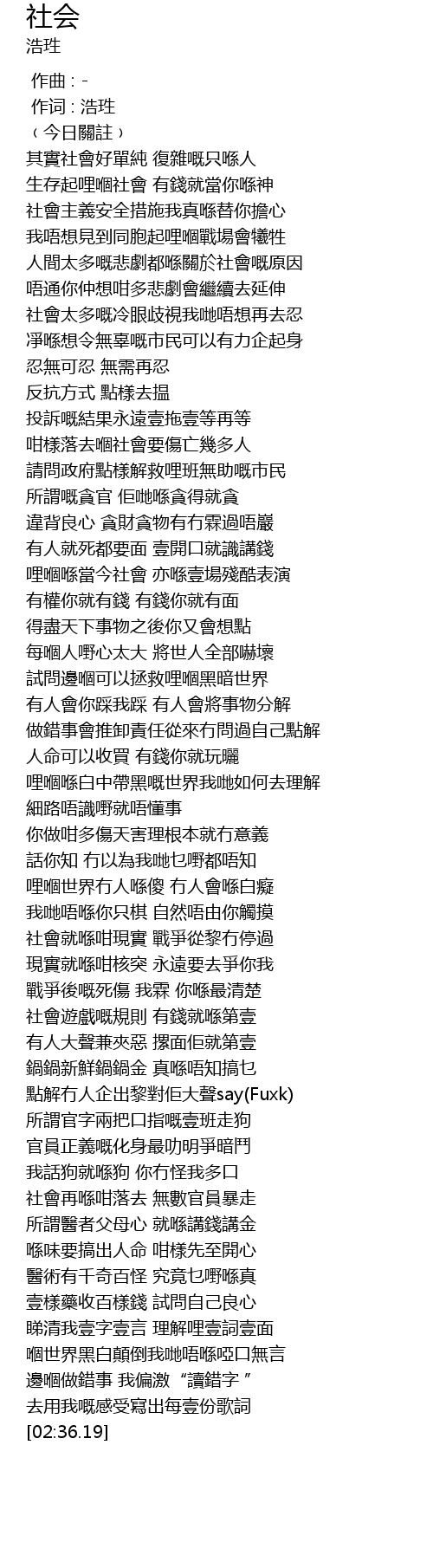 | [01:58.35] | 點解冇人企出黎對佢大聲say(Fuxk) |
