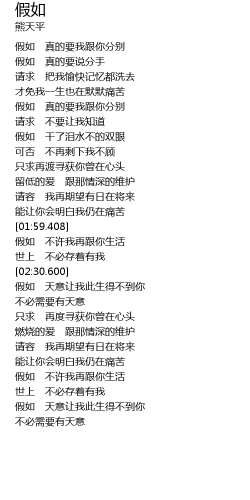 | [00:30.530] | jiǎ rú zhēn de yào wǒ gēn nǐ fēn bié |