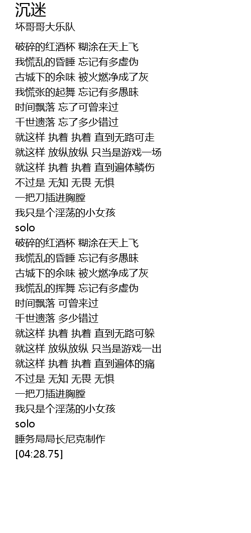 | [01:50.41] | 我只是个淫荡的小女孩 |