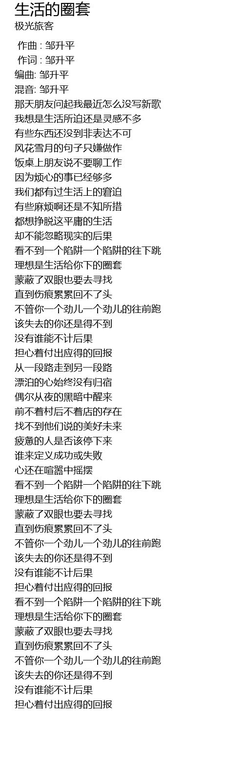 | [03:21.18] | 理想是生活给你下的圈套 |