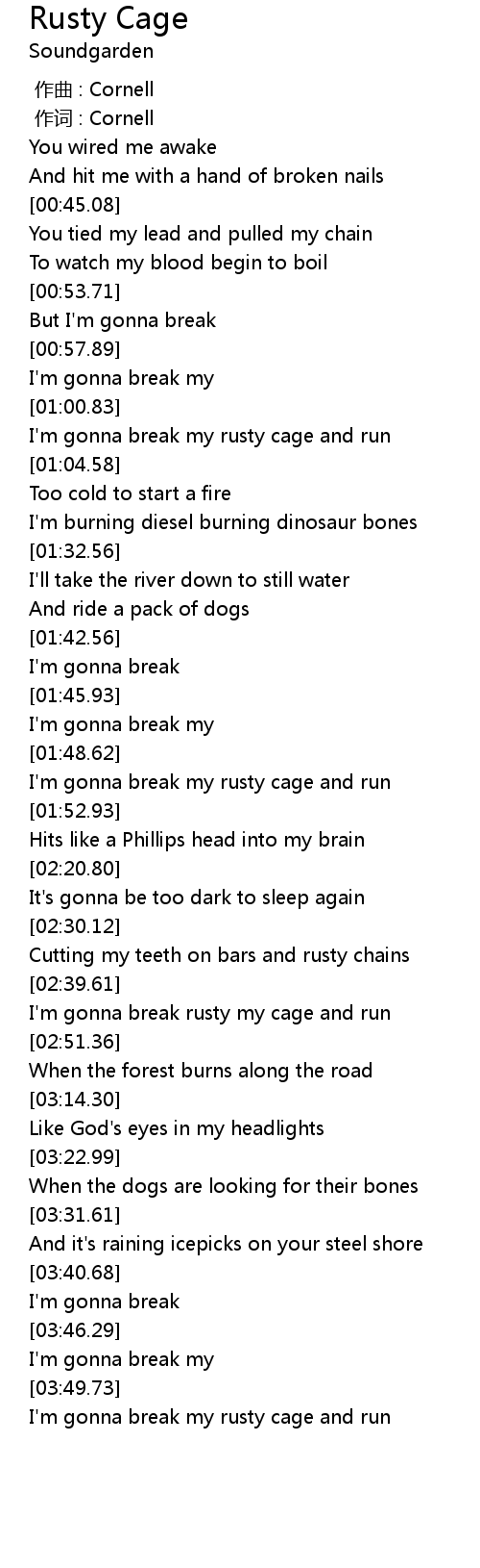 | [03:53.87] | I'm gonna break my rusty cage and run |